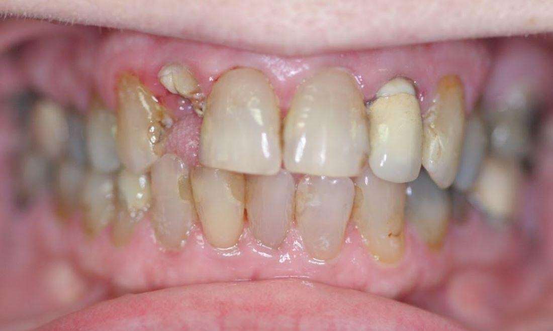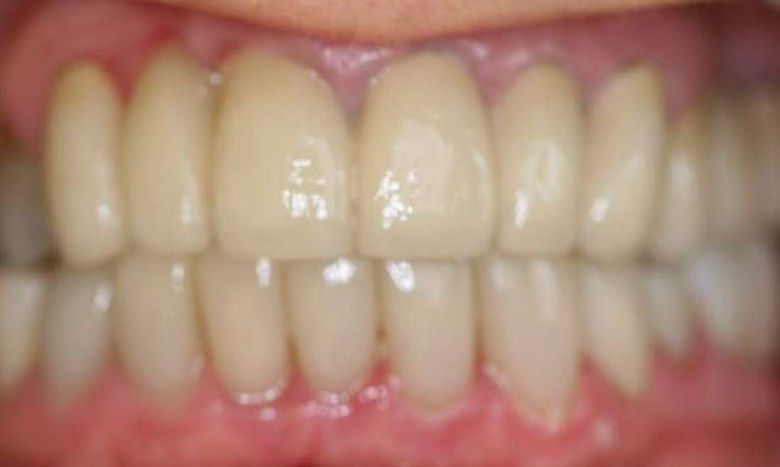 This patient came to our practice after years of not being able to take care of her dental needs. We phased her treatment for a full mouth reconstruction, including removal of hopeless teeth and rehabilitation of the broken down ones.