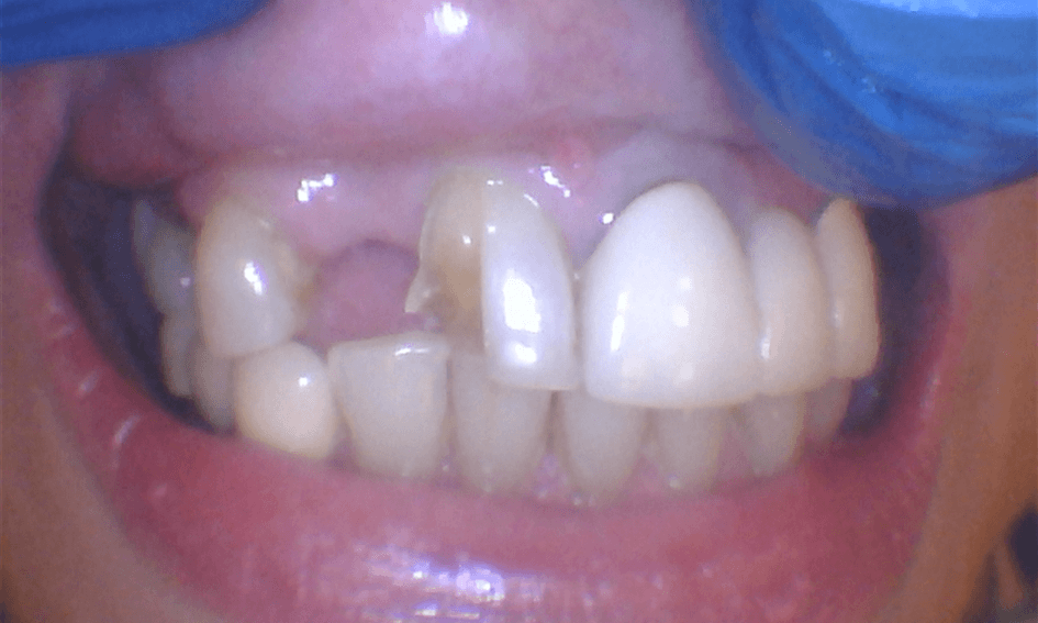 This patient presented to our Ahwatukee office recently with a chief complain of "broken smile". She has been taking care of her elderly parents and putting her needs last. She realized there were several issues she needed to handle but her main concern was the front teeth which had broken off and fractured. We talked about how it is important to have back teeth to support the weight of a bite; the patient understood this and elected to start address her functional and cosmetic situation on the front before moving on to the back teeth. What you see is the initial presentation and the final restoration of three teeth. We focused more on strength for the front teeth because we knew this may be a staged or limited treatment case; the patient went to the lab to make sure that we matched her existing dental work.